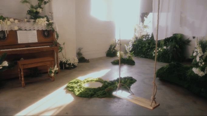 Designed and built by us in collaboration with Syanne, this immersive forest studio is inspired by the lush rainforest meets Ghibli whimsy. Layers of florals, mosses, and greenery climb through the space, creating a rich, otherworldly landscape. Created as a rentable photo studio.