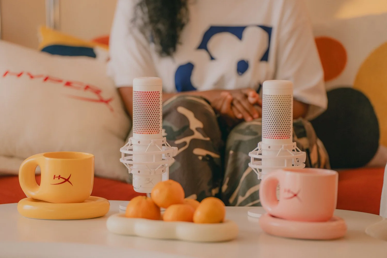 We treated the HyperX QuadCast microphone as more than equipment—it became the focal point of the set design. Positioned on custom risers, lit with precision, and backed by sculptural elements that drew the eye, the mic stood as a symbol of unfiltered voice. The layout and lighting were designed to make every guest feel like they were stepping into the spotlight, ready to drop a hot take.