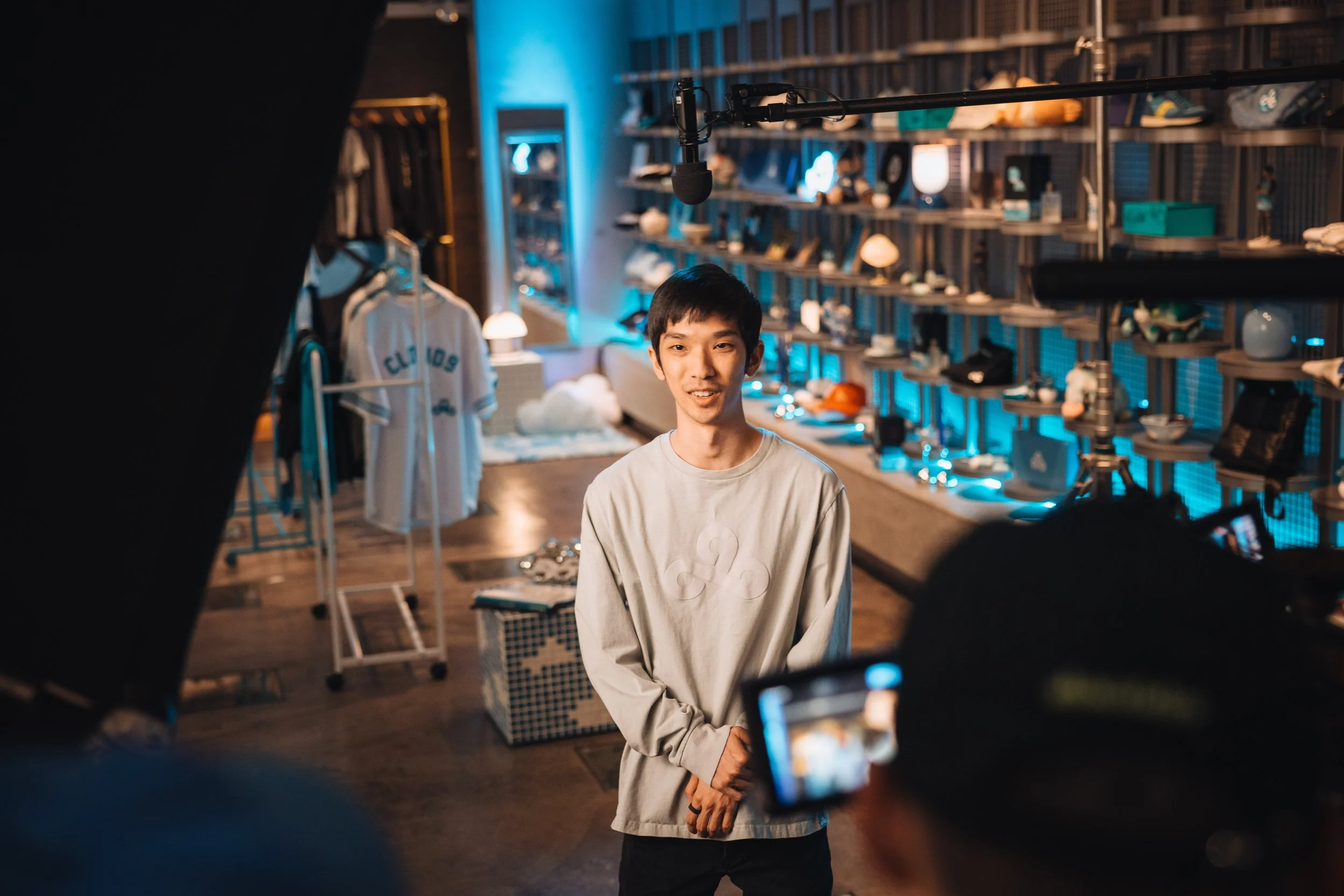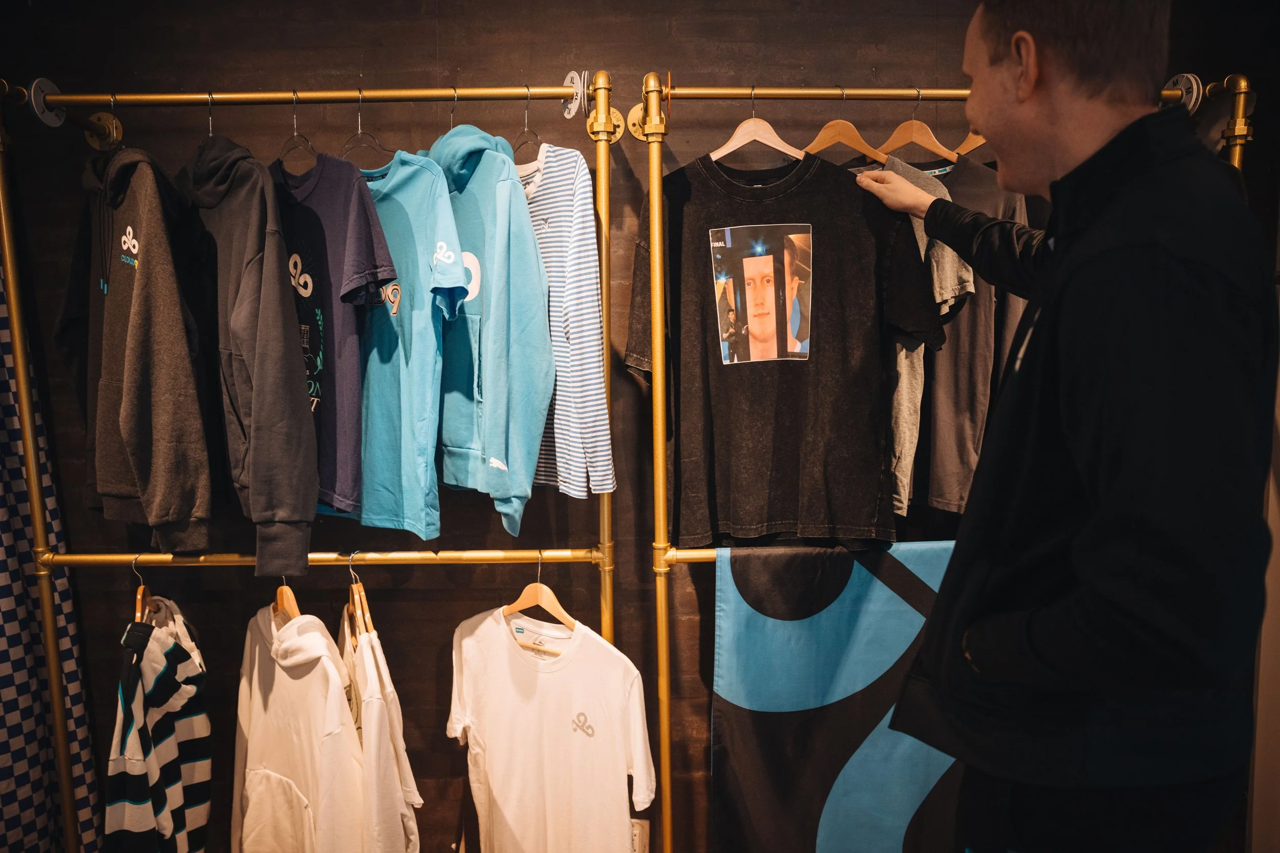 Custom props and set details paid homage to iconic team memes and moments, layered alongside historic merch as visual callbacks for longtime fans. A custom acrylic sign anchored the build, while the lighting, styling, and color palette were dialed in to reflect Cloud9’s brand.