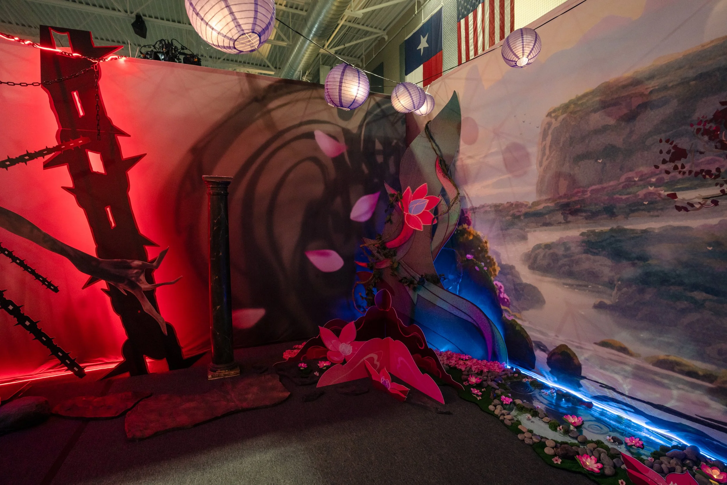 Each scene was carefully crafted with layered scenic elements inspired by original artwork and in-game cinematics, meant to evoke a storybook moment that fans could step into. Dimensional set pieces, illustrated backdrops, and atmospheric lighting combined to immerse fans in the perfect photo op.