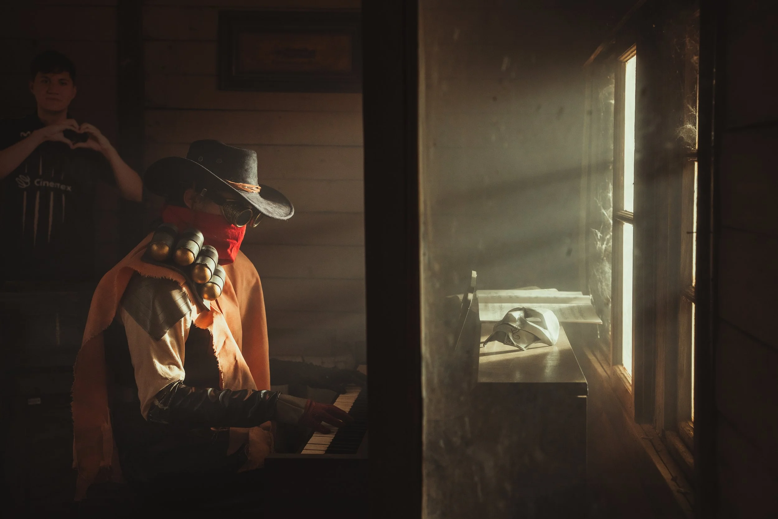 Although the location came with a few large furniture pieces, the space was otherwise completely undressed, giving us the freedom to build the world from the ground up. We sourced, customized, and placed props that offered subtle callbacks to the game’s lore and characters. Jhin’s signature mask, a wooden upright piano, a vintage typewriter, gold coins, a saloon sign, missing-person posters, and more. Every touchpoint - from the bottles to the wall art - was crafted to feel straight out of a western, then sprinkled with enough character-driven chaos to give it flair & fun!